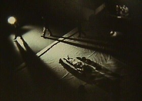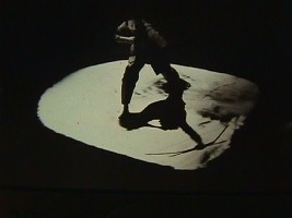 | Zaroff's Tale uses a 200 ft. rope and a variety of visual and audio media techniques to communicate the relationship between abstract string compositions and the teaching mythologies associated with them in the culture of the Topek Inuits. The relationships between visual form, physical action and social content are explored as an allegorical presentation of new relationships inherent in our own current and future technologies. I construct the string forms to be viewed not as a finished form, but as an art form taken out of a sentence of larger context, of many more transitions. In this manner the viewer is instructed to bear in mind the manipulators, present and past, whose hands or bodies are not shown but rather implied in the ropes. | ![]() |